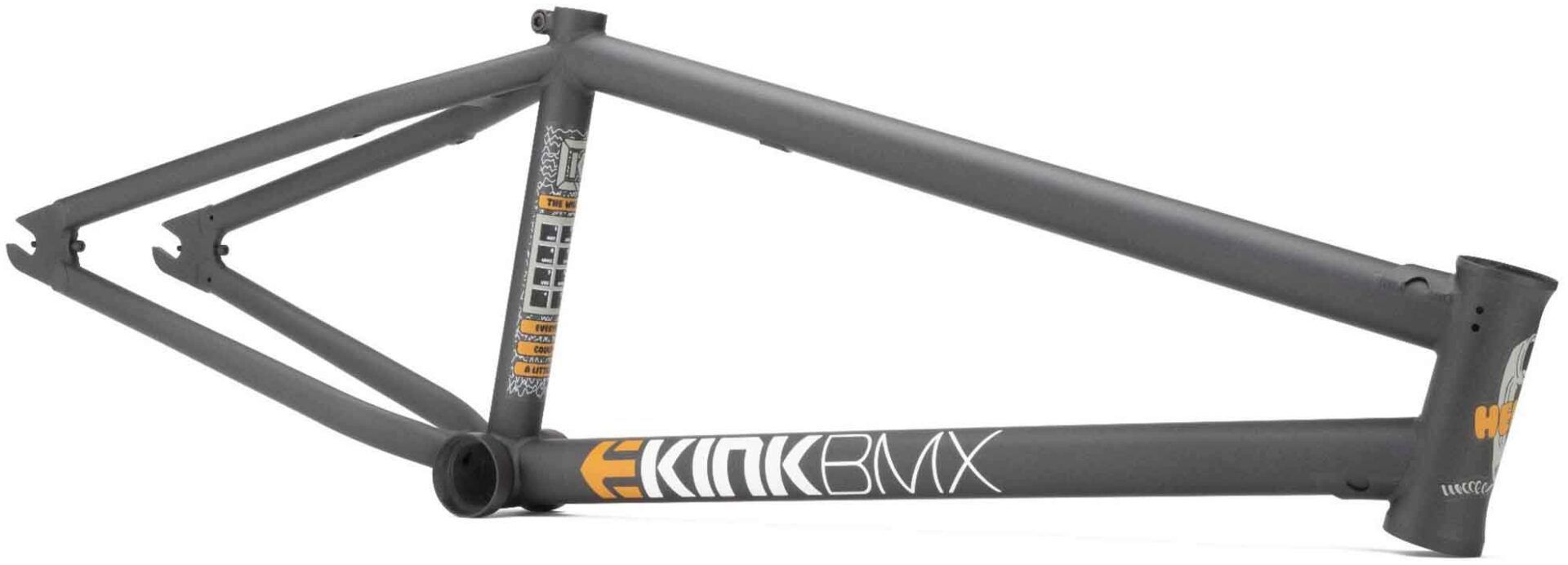 The Williams frame is Nathan Williams’ first signature frame from Kink and features modern street geometry while retaining a classic look. Despite the classic look though, the frame features several subtle details that should not be overlooked. The steeper 75.5-degree headtube is responsive, and the short 12.75” chainstay length makes the frame nimble without compromising on tire clearance; fitting up to 2.5” tires. The double butted toptube and downtube with gussets on both, ensure plenty of strength in the front end while the chainstay and seatstay bridge designs allot for generous tire clearance while adding as much stiffness as possible. Nathan’s frame of course comes standard with integrated seat post clamp, integrated chain tensioners, and removeable brake mounts. Additional details like the custom seatstay bridge badge inlay, and interior dropout knurling round out both the good looks and serious functionality of the Williams frame.
